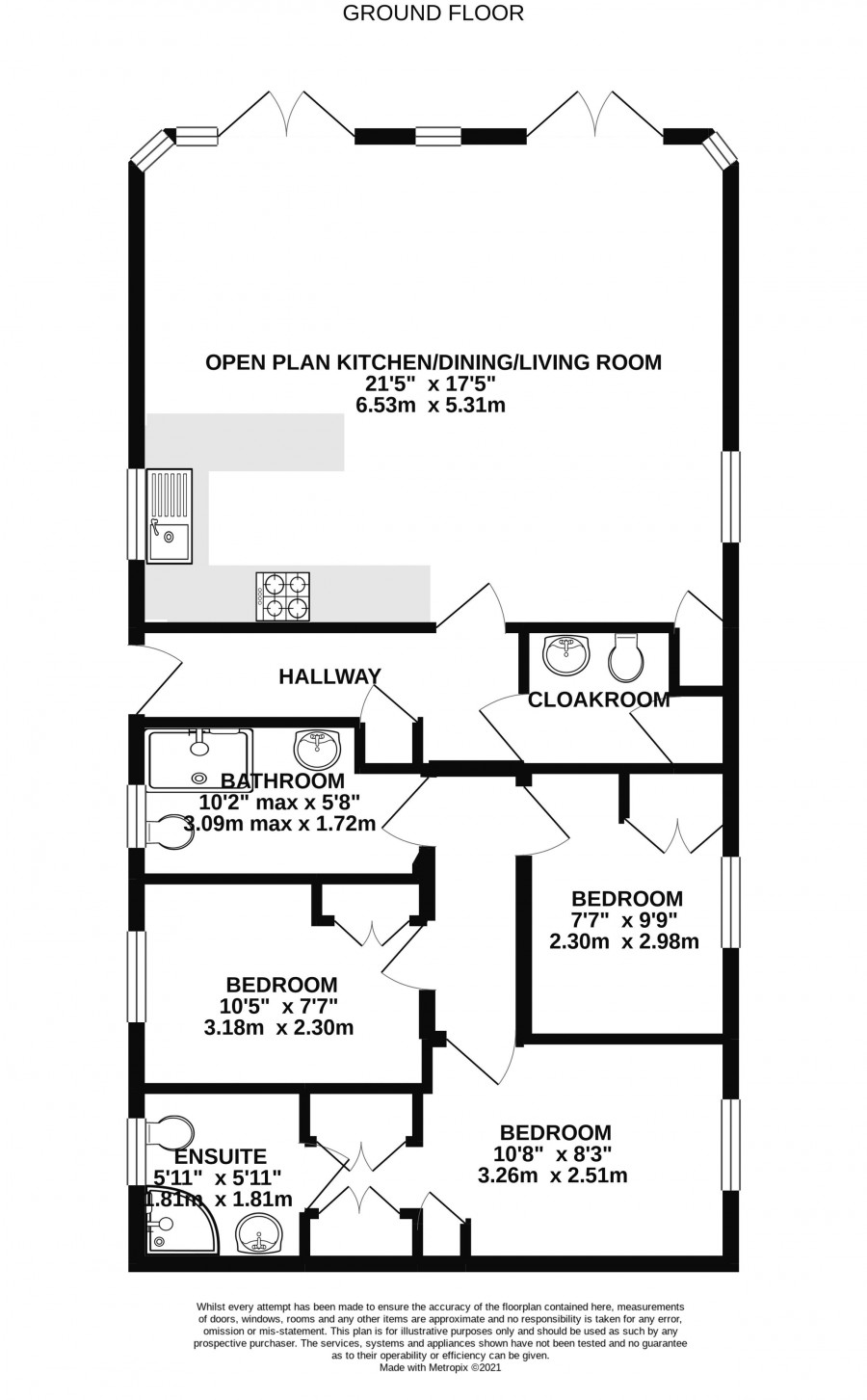 - Three bedrooms